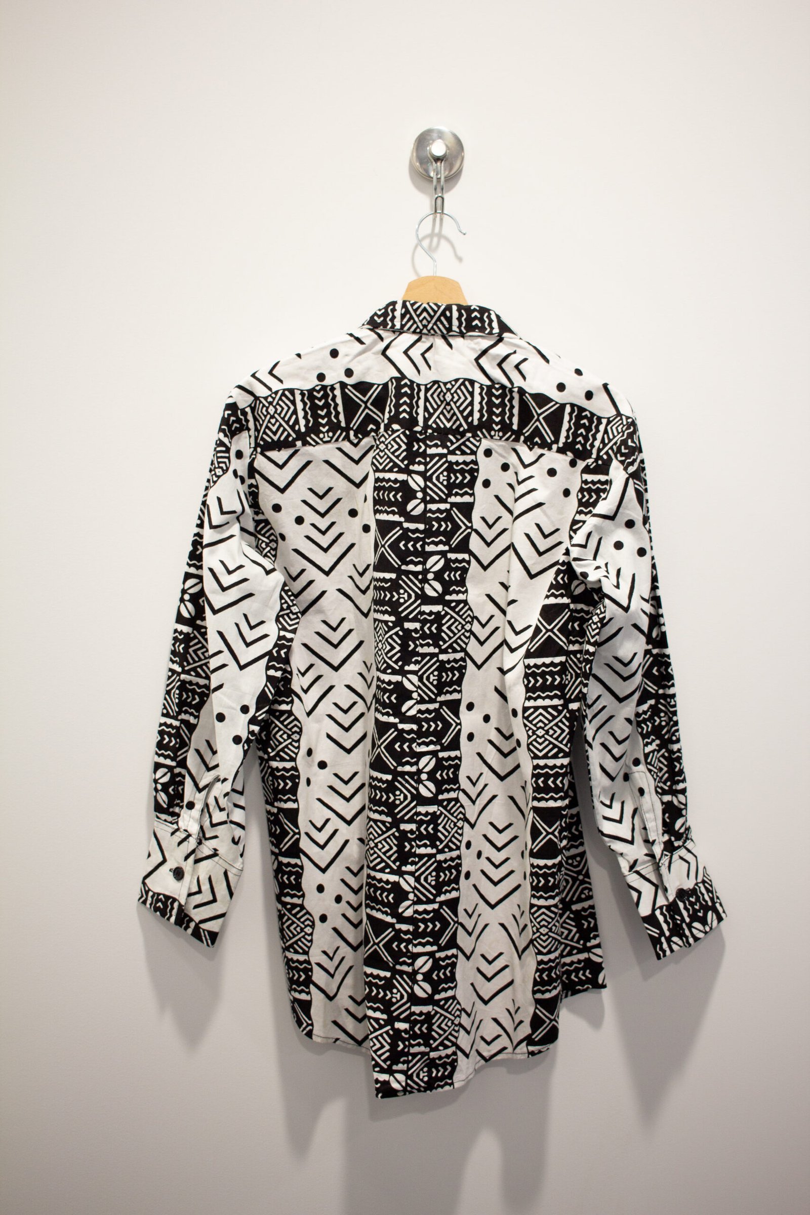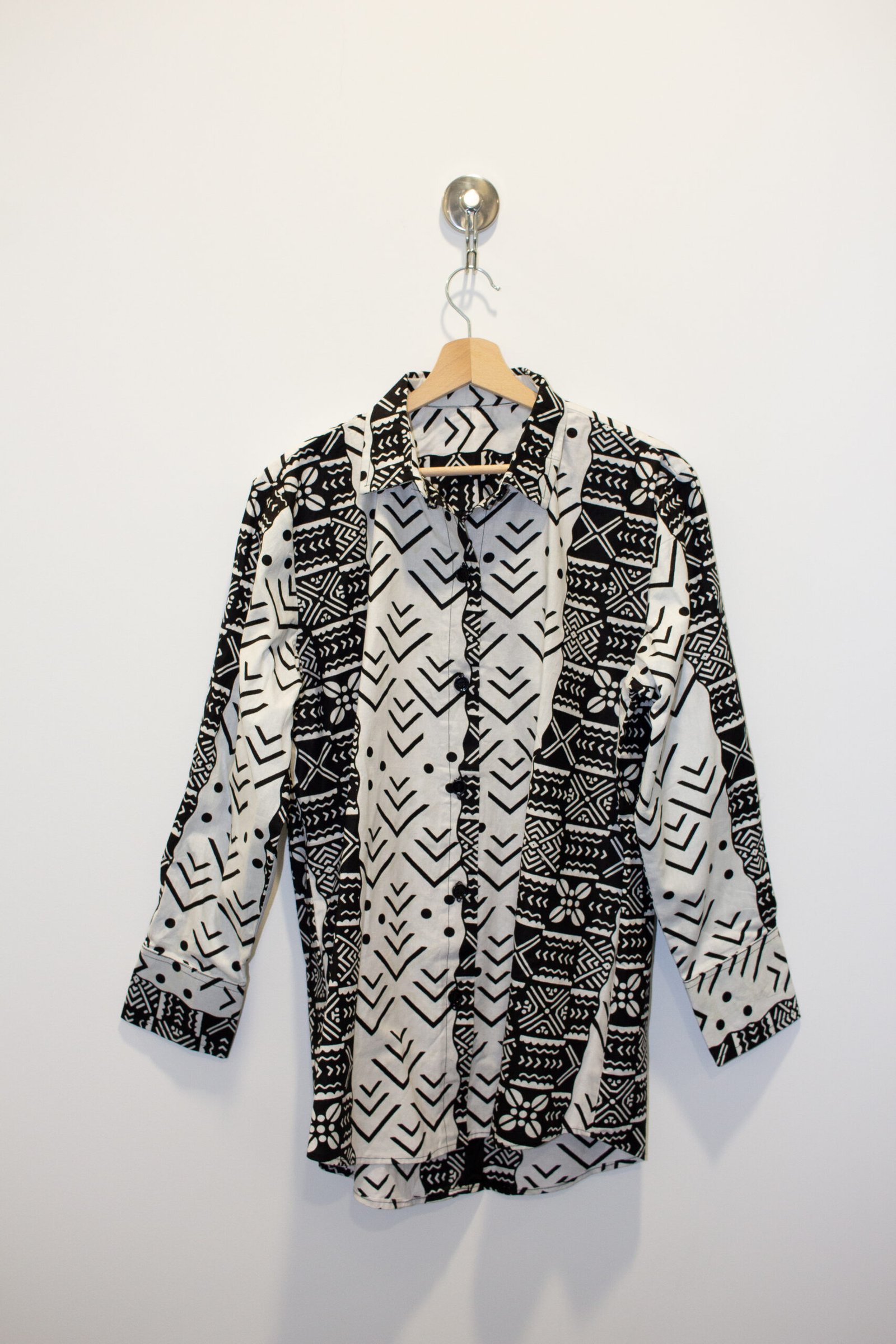 Épurée et pleine de sens, cette chemise mixte en wax blanc aux symboles noirs très fins incarne la beauté de la simplicité. Confectionnée à la main au Sénégal, en 100% coton, elle allie confort, légèreté et distinction. Avec ses motifs subtils, elle se porte aussi bien en tenue de jour élégante qu’en pièce chic pour une soirée.